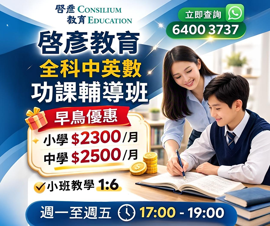 啓彥教育「全科中英數功課輔導班」現已招生😄😀😁😁
